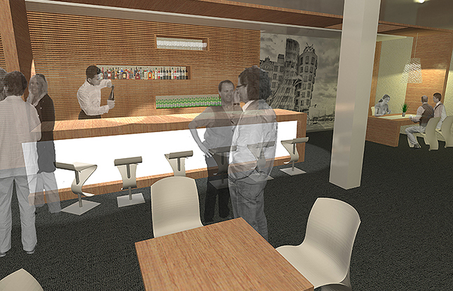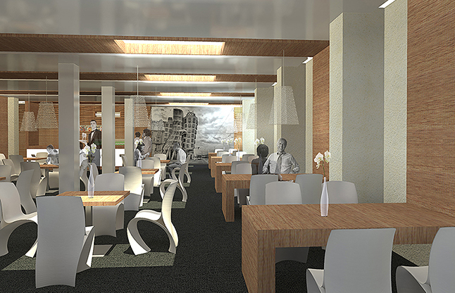 Studie interiéru hotelu Clarion řeší stávající prostory v původním objektu. Přední místnost směrem od ulice tvoří hotelová hala, která je propojena s lobby barem.V zadní místnosti, přirozeně osvětlené střešními světlíky, vznikla hotelová restaurace.