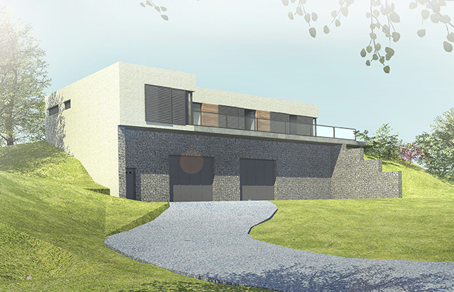 Projekt rodinného domu s automechanickou dílnou je rozdělen na dvě samostatné části, ke kterým vedou dva různé přístupy. Spodní podlaží slouží jako dílna autoservisu a horní je vyhrazeno pro rodinné bydlení.