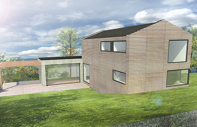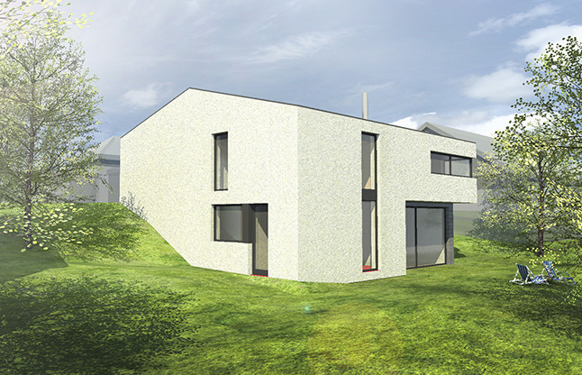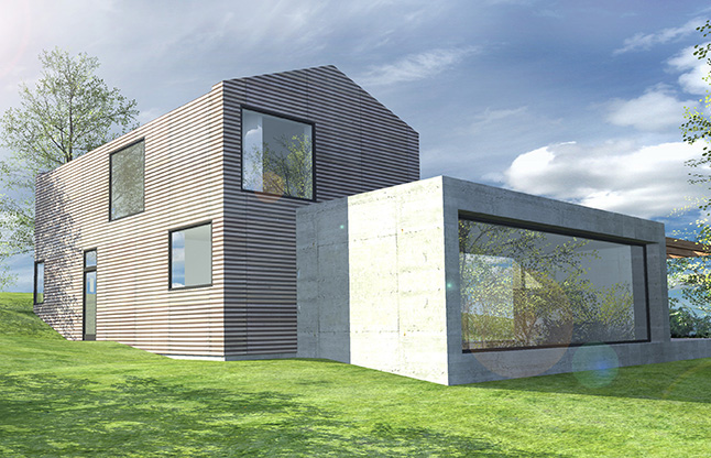 Pro tento objekt vznikly dvě plnohodnotné studie. Pozemek je situován na severním svahu s hodnotným výhledem. Severní svah však přináší řadu nástrah a především se muselo řešit dostatečné proslunění objektu.