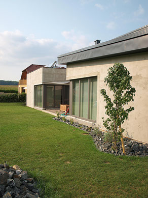 Rodinný dům se nachází v okrajové části Kutné Hory v zástavbě dalších rodinných domů. Všechny obytné místnosti se otevírají směrem do zeleně. Patro je věnováno dětem a jejich pokojům. V přízemí je směrem do ulice situována pracovna, která může sloužit jako samostatná jednotka.