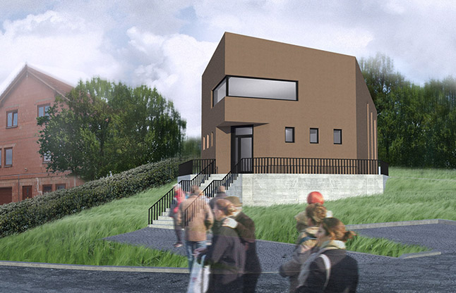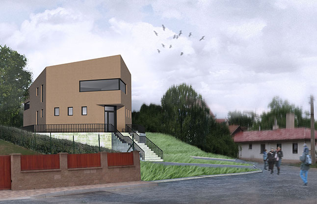Parcela pro nově vnikající modlitebnu se nachází v historickém centru Brandýsa. Půdorys objektu znázorňuje tvar pavézy - jeden z hlavních symbolů husitské církve. V budově se nachází modlitebna částečně prosklená a přístupná do přilehlé zahrady, spolková místnost a oddělený byt duchovního správce.
