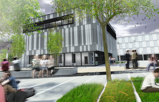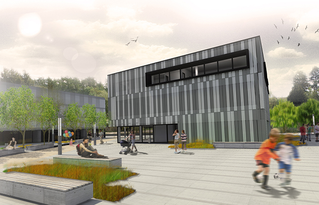Studie místního společenského centra, které by mělo vytvořit stěžejní bod nově vnikající lokality. Většinu objektu obsadí místní radnice s přidruženými funkcemi, jako je obřadní sál, městská knihovna atd. Kolem budovy je vyřešeno i přilehlé náměstí.