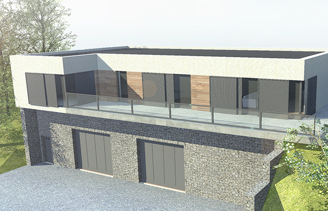 Projekt rodinného domu s automechanickou dílnou je rozdělen na dvě samostatné části, ke kterým vedou dva různé přístupy. Spodní podlaží slouží jako dílna autoservisu a horní je vyhrazeno pro rodinné bydlení.